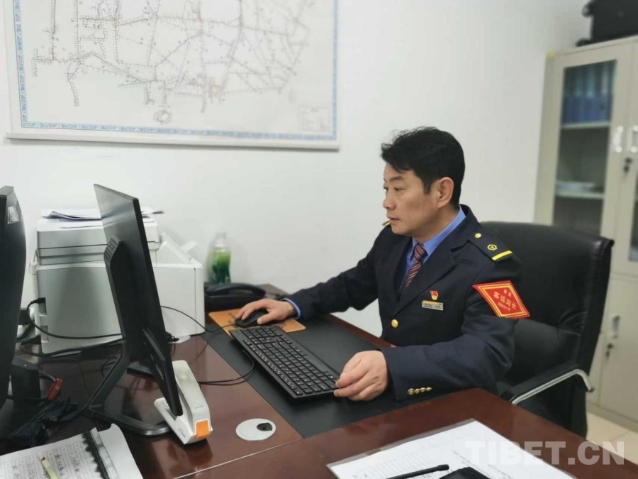 清晨7时许,距离交接班还有一段时间,山南市火车站客运值班员王庆已经到岗。整理好制服、佩戴好党员徽章,王庆即将开始一天的工作。