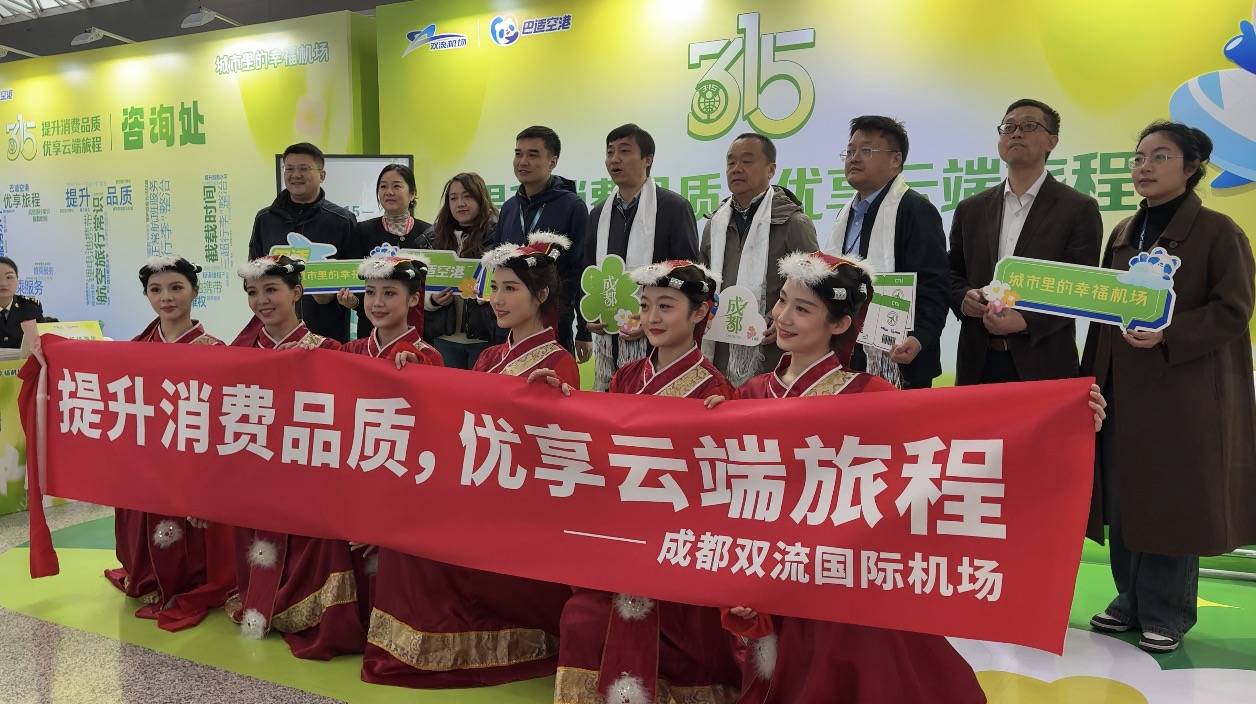 3月15日上午,西藏航空(林芝)旅游发展有限公司在成都双流国际机场举办“3·15国际消费者权益日”主题活动,联合多家文旅企业及媒体,共同推广航文旅融合项目,传递品质消费理念。