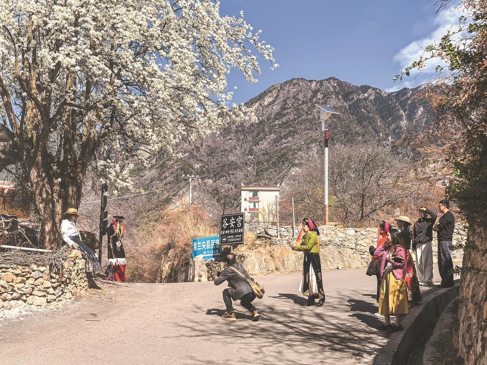 春风有信,花开如期。随着近期气温持续回暖,我州丹巴县迎来了春日里的“高光时刻”。漫山遍野的梨花与桃花次第绽放,如云似雪,灿若烟霞,将一座座古朴的嘉绒村寨装点成一幅幅流动的绝美画卷。藏寨碉楼在花影间若隐若现,青石小径落英缤纷,恍若世外桃源。来自天南海北的游客三五成群,或徜徉于蜿蜒小径,静享花间清幽;或换上色彩斑斓的嘉绒服饰,在花枝婆娑间定格春光。欢笑声与快门声此起彼伏,为山谷平添了盎然生机,共同绘就一幅“人在画中游”的春日胜景。如织的游人循香而来,让这片被誉为“最佳旅游乡村”的土地,不仅凭“颜值”惊艳四方,更催生出红红火火的“花经济”——以花为媒,文旅融合,为乡村振兴注入了蓬勃活力。