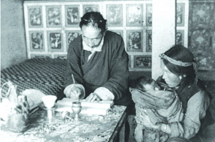 西藏农奴抱着新生儿来到农奴主家登记并交纳人头税 图:光明日报