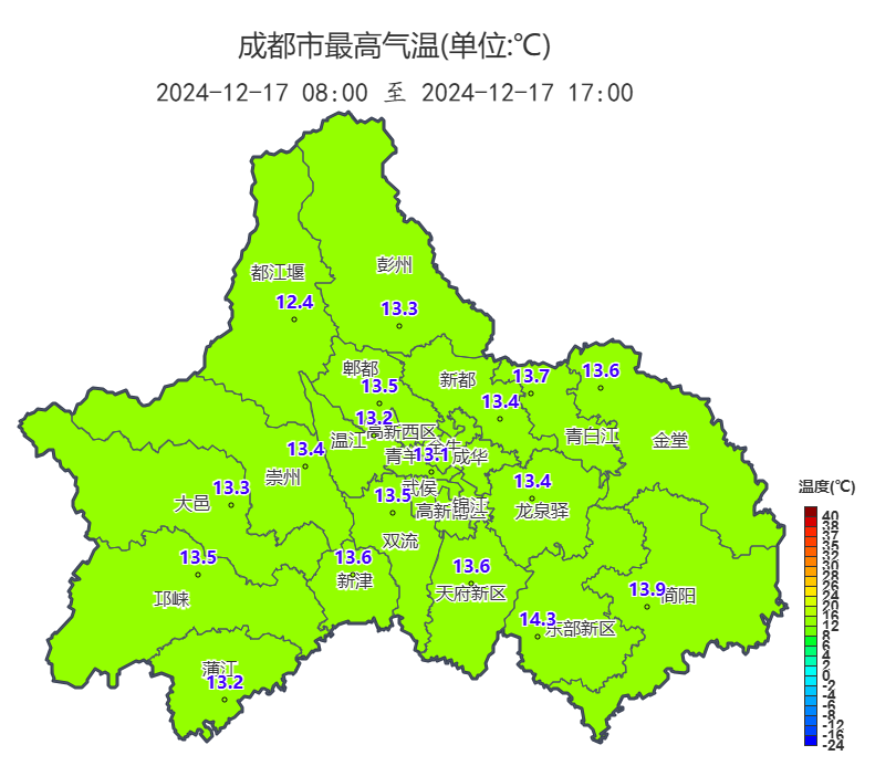今天晚上到明天白天:盆地各市多云转阴天,广元、德阳、绵阳、南充、遂宁、资阳、内江、自贡8市大部和巴中、雅安、乐山、宜宾4市局部地方有小雨或零星小雨;阿坝州东部、甘孜州东南部和凉山州东北部多云间阴,局地有阵雪(雨),川西高原和攀西地区其余地方晴间多云。24小时内,盆地最低气温:西北部0~3℃,其余地方4~7℃;最高气温:10~13℃。