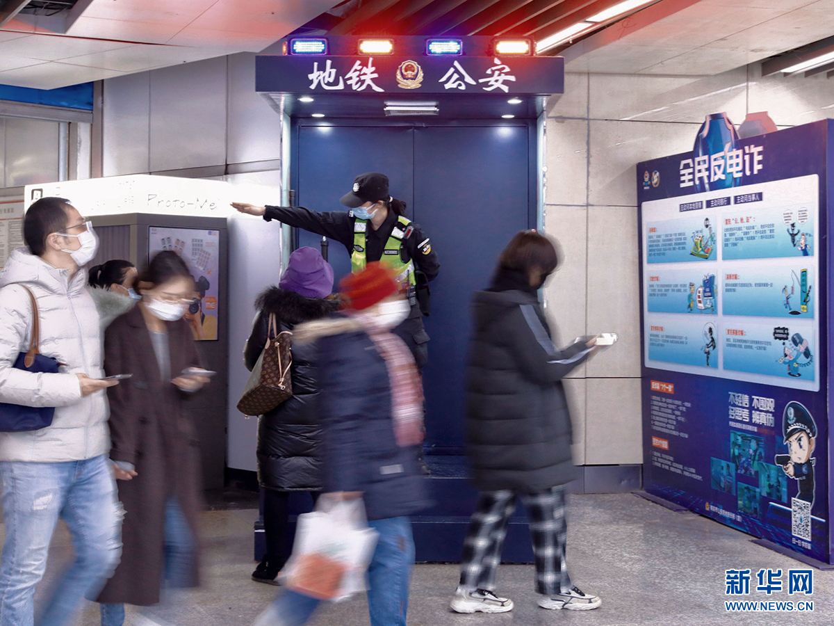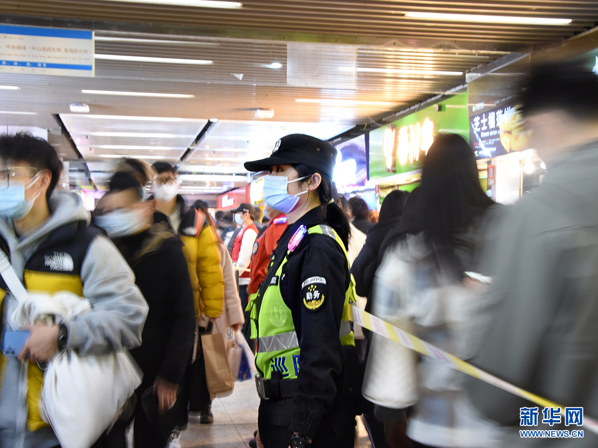 南京地铁新街口站位于有“中华第一商圈”之称的南京新街口地区,共有24个出入口,是市内客流量最大、警情最多的地铁站点。在这座人流密集的“地下城”,每一位执勤警力,都在为人们的平安出行保驾护航。(左二为胡漫丽)
