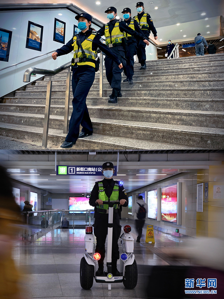 “女子巡防中队编排成3个巡防小组,从每天早7点到晚23点,轮流负责新街口地铁站的服务群众、巡逻盘查和接处警等工作。”队长张珂瑜介绍。胡漫丽说,一天下来,在朋友圈运动步数“登顶”是常有的事,不过警务平衡车等高科技装备为巡防工作提供了便利,也有效节省了应急处突时间。(郭一航/摄)