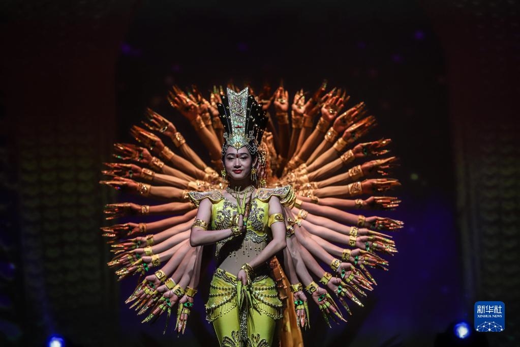 中国残疾人艺术团的演员在巴西圣保罗表演《千手观音》(2019年11月6日摄)。新华社发(拉赫尔·帕特拉索 摄)