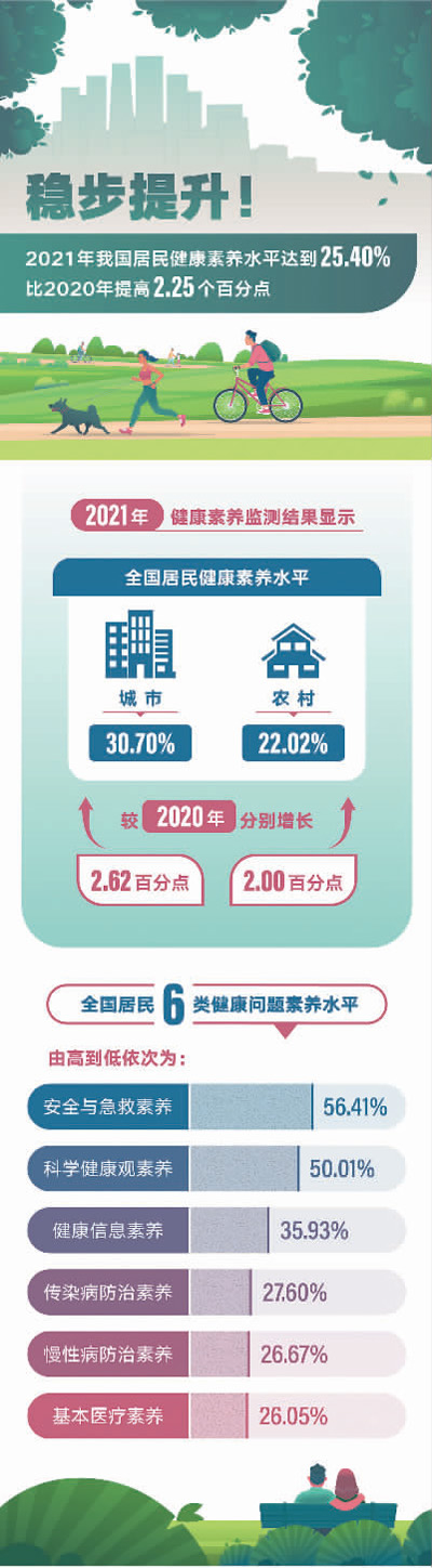 近年来,我国居民素养水平持续提升,从2008年的6.48%提升到了2021年的25.40%,特别是实施健康中国战略以来,提升幅度明显增大。但整体来看,健康科普工作力度仍需加强。