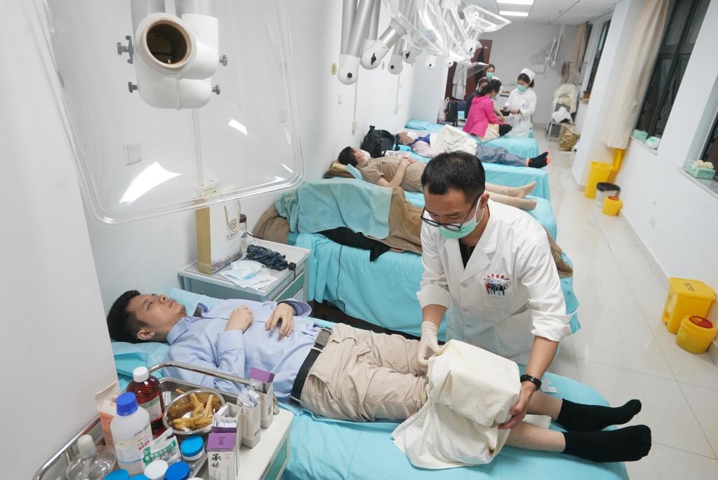 2020年6月5日,在江苏省中医院针灸康复科特色疗法中心,医护人员给市民进行针灸治疗。新华社记者 季春鹏 摄