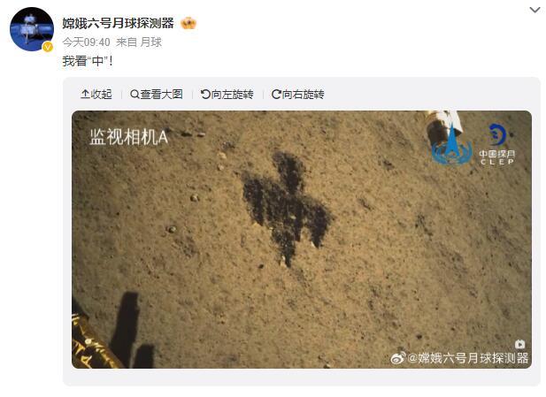 嫦娥六号完成月背采样之后,月表呈现一个“中”字。@嫦娥六号月球探测器:我看“中”!