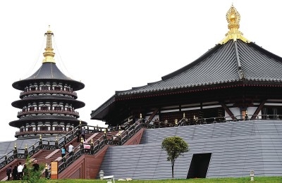 隋唐洛阳城国家考古遗址公园内的天堂(左)、明堂。新华社发