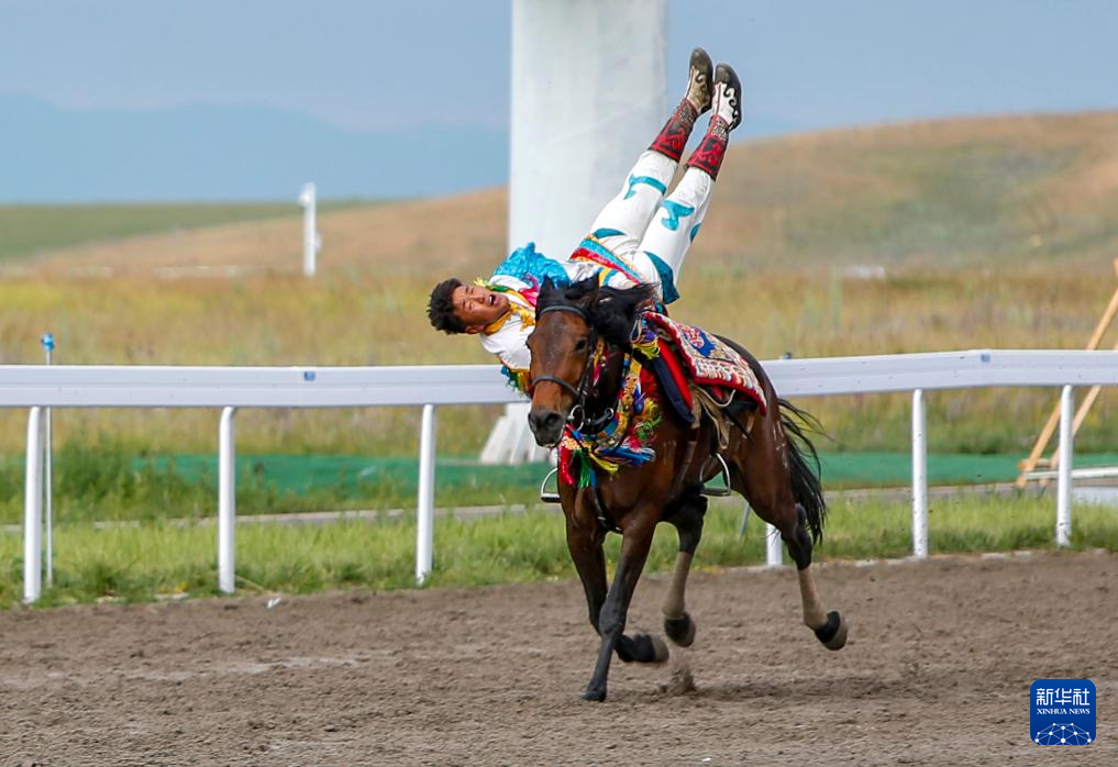7月10日,青海代表团运动员参加表演项目技巧类康巴马术比赛。新华社记者 陈朔 摄