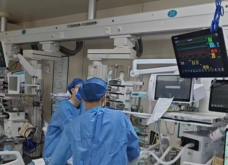 近日,湘雅二医院重症医学科医生抢救热射病患者。新华社发