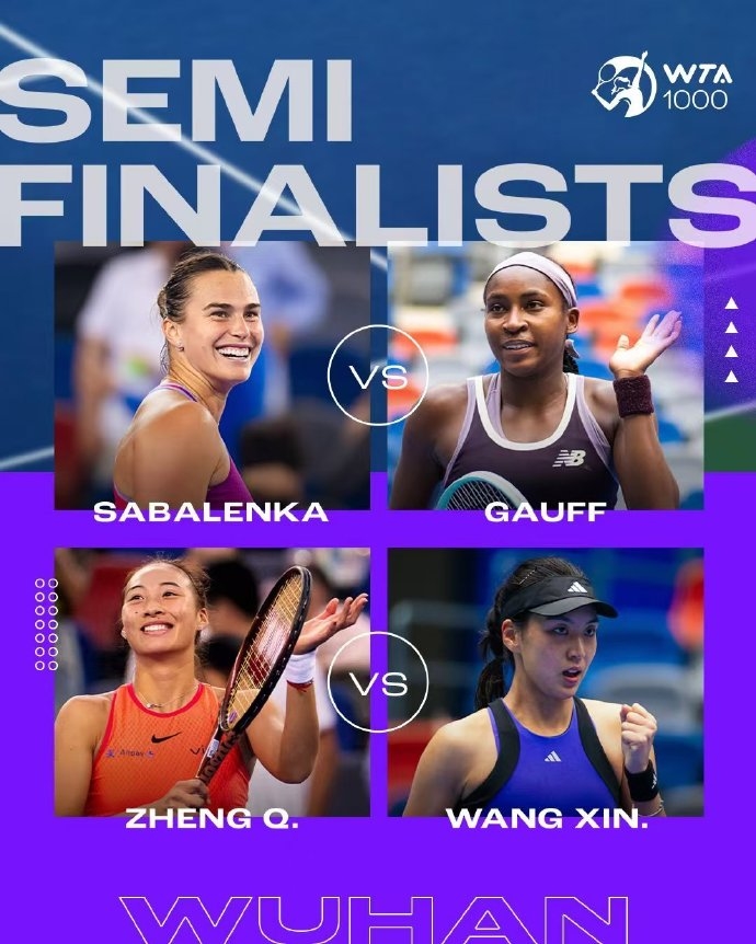 半决赛中,郑钦文与王欣瑜将上演中国金花德比。