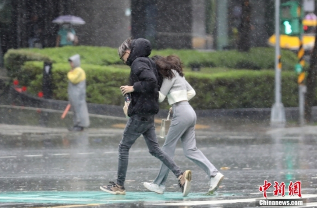 10月31日,台北街头的行人。受台风“康妮”影响,当天台北等地迎来强降雨和大风。