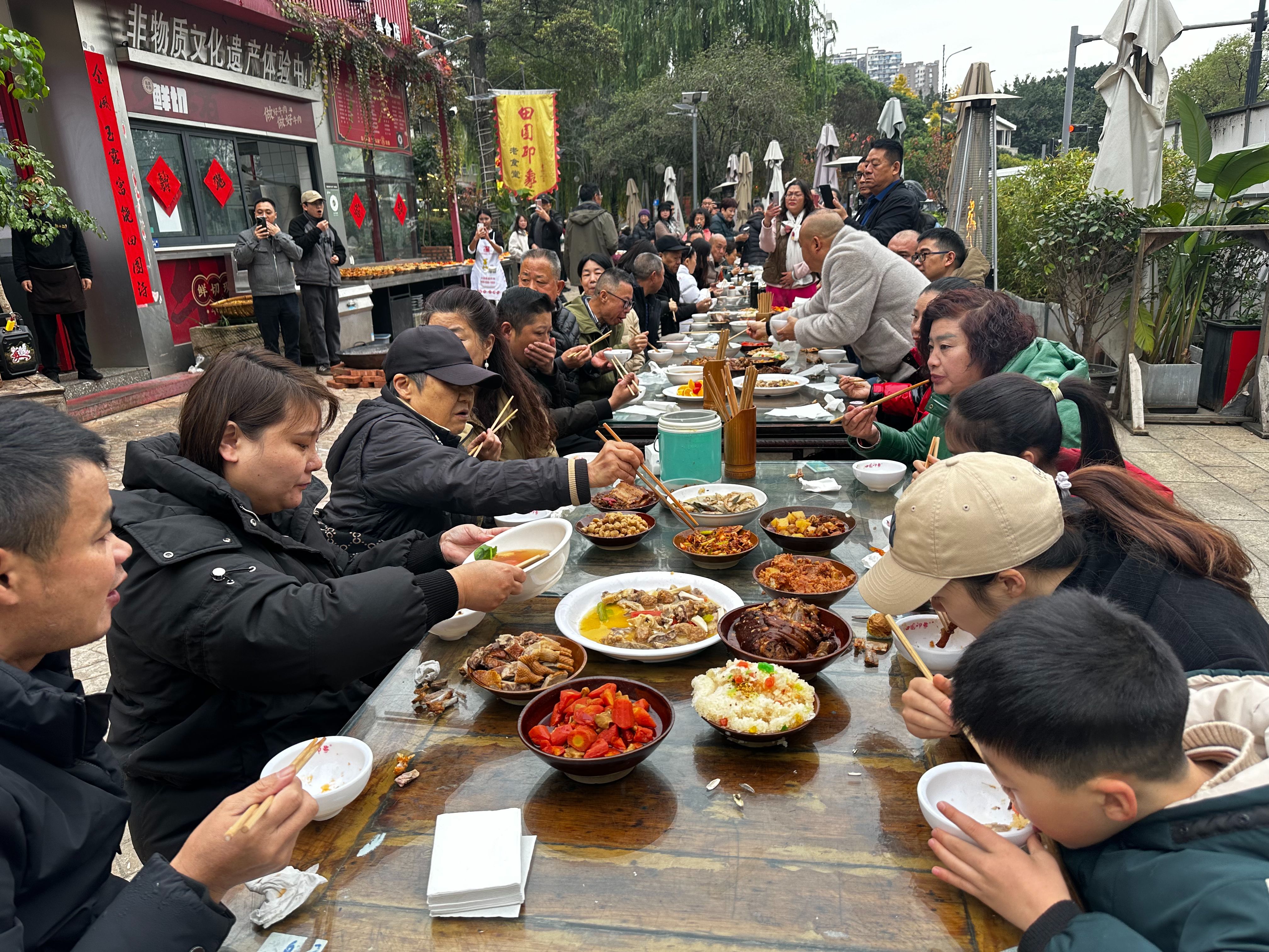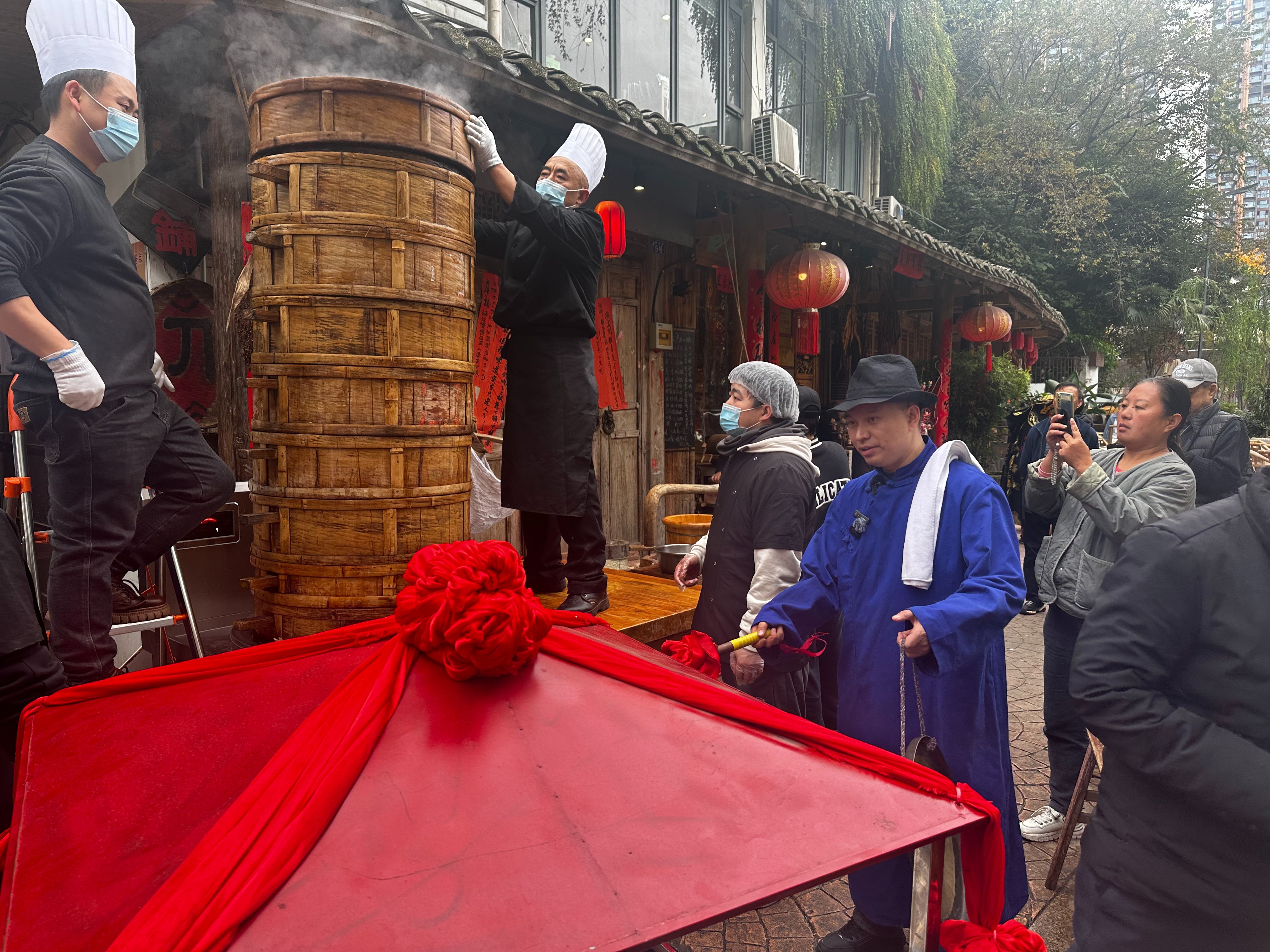 “现在很多人不太重视吃饭,来去匆匆,扫码点餐,扫码结账,填饱肚子马上离开。”作为“成都鸣堂习俗”的非遗传承人,深耕餐饮行业三十余年的熊阿兵告诉记者,现在大家在对待餐饮更多的是“对付”,缺少沟通和交流,而“鸣堂”技艺就是传承热情好客的餐饮文化,让餐饮更有烟火气。