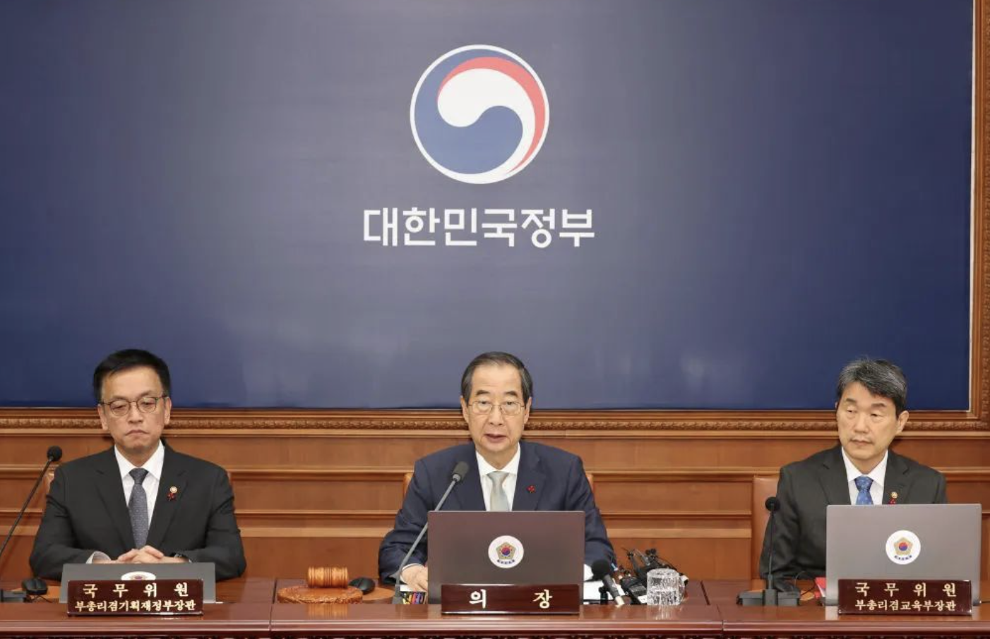 韩德洙当晚在首尔政府大楼召开临时国务会议,讨论经济、安保、社会等领域面临的问题以及职权代行体制下的国政运营方向。会后发表对国民谈话,表示将依据宪法和法律竭尽全力稳定国政。