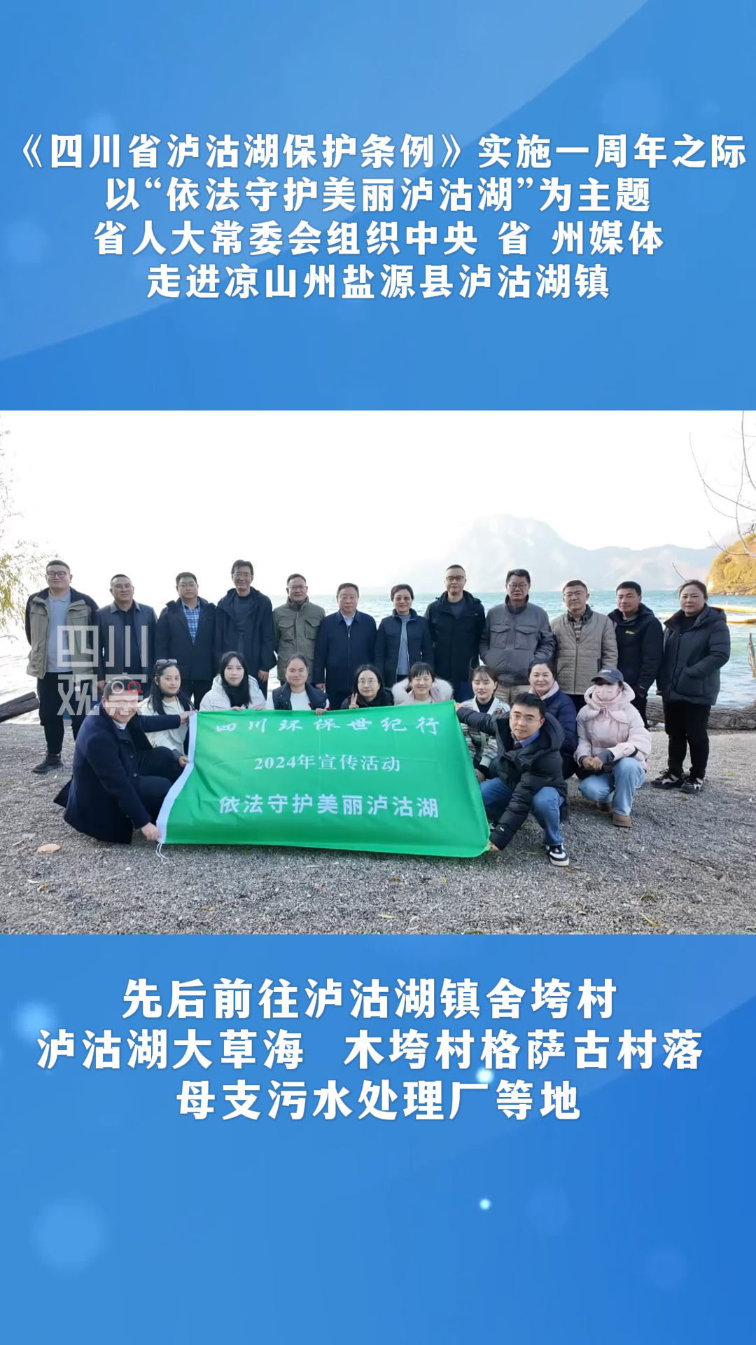 为进一步做好《四川省泸沽湖保护条例》的宣传贯彻落实,在《条例》实施一周年之际,以“依法守护美丽泸沽湖”为主题,近日,省人大常委会组织中央、省、州媒体走进凉山州盐源县泸沽湖镇,先后前往泸沽湖镇舍垮村、泸沽湖大草海、女神湾、德庆林寺、木垮村格萨古村落、母支污水处理厂等地。