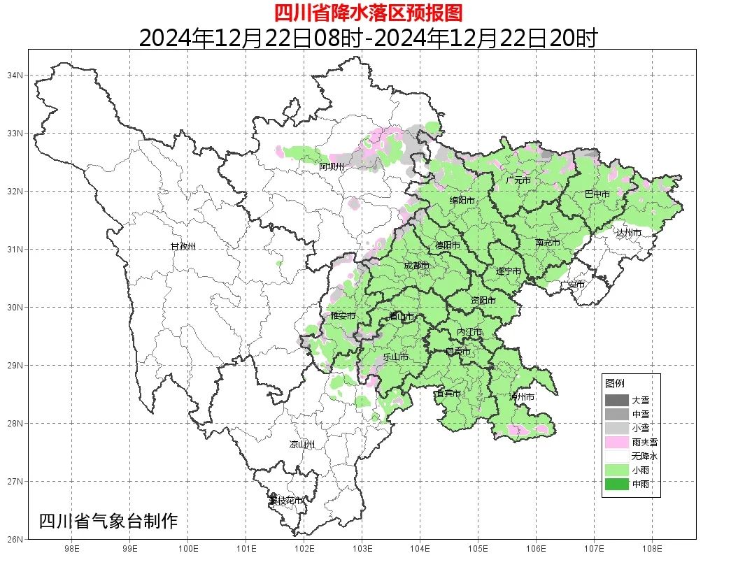 此外,还需注意的是,盆地22日阴天有小雨,其余时段以阴天间多云天气为主,西部南部有小雨或零星小雨;川西高原中部南部和攀西地区大部以晴到多云天气为主,空气干燥,部分地方午后到傍晚风力较大,需加强火源管理和森林防火工作。