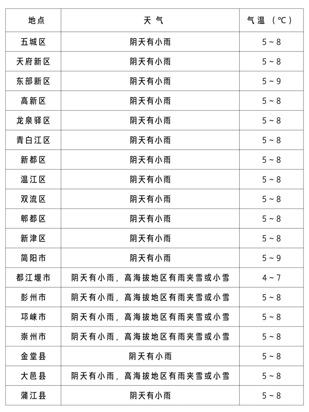 22日白天:阴天,有小雨,高海拔地区有雨夹雪或小雪,气温4~9℃;