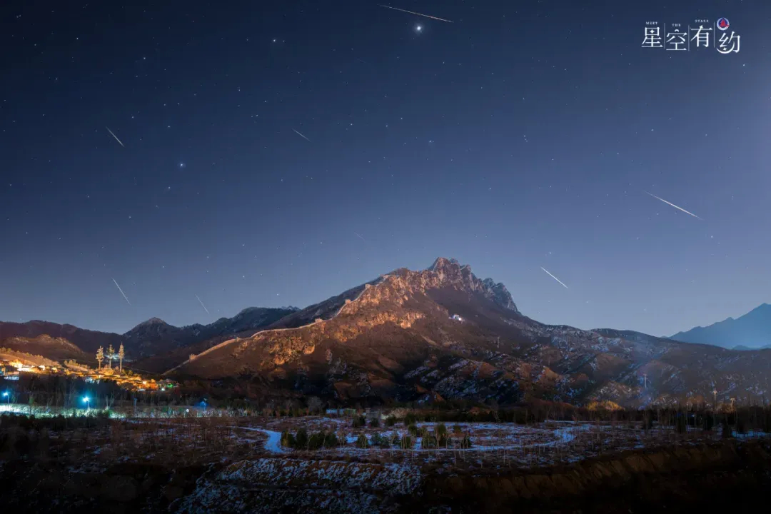 2024年1月4日在北京司马台长城拍摄的象限仪座流星雨(多张叠加)。(霍春雷摄,星联CSVA供图)