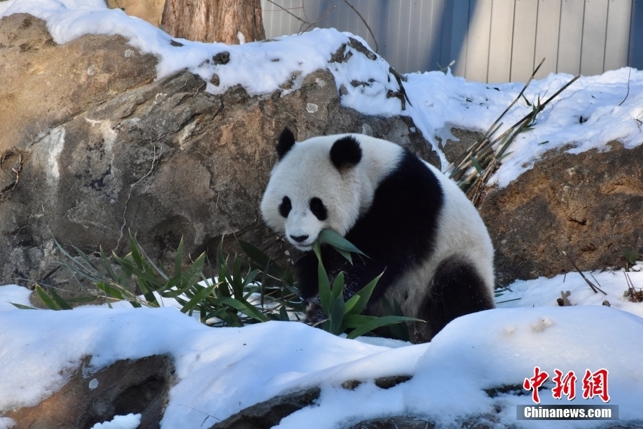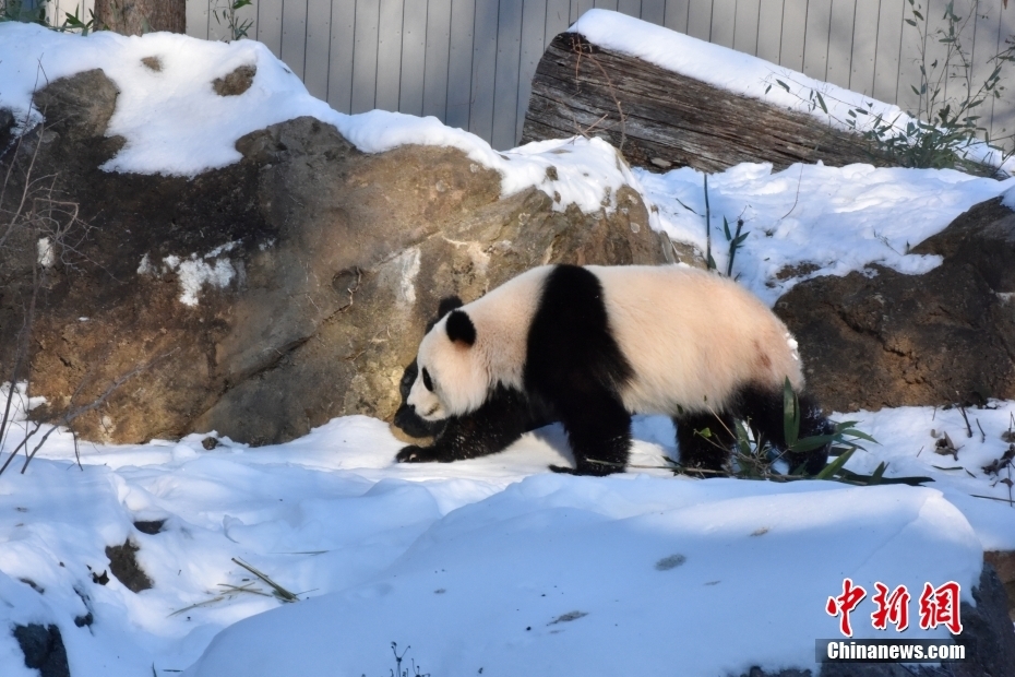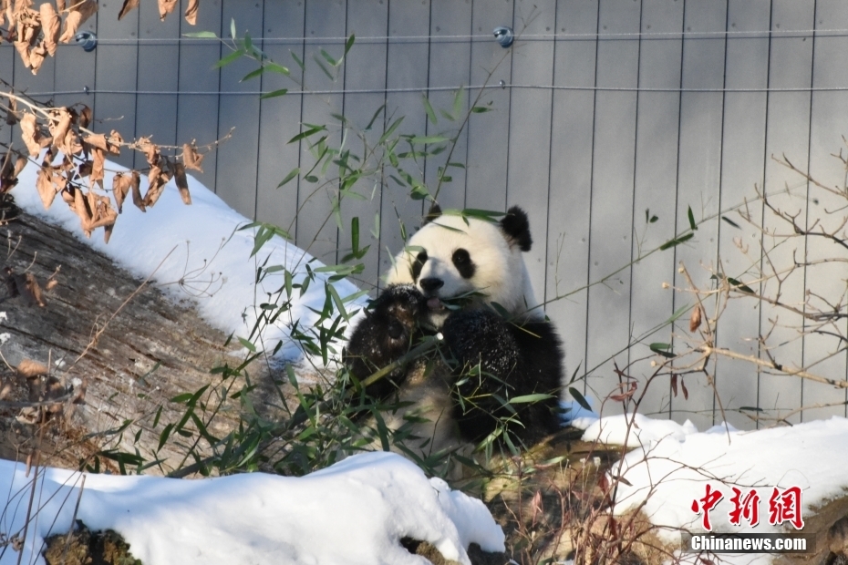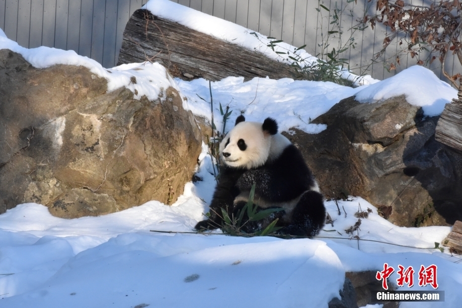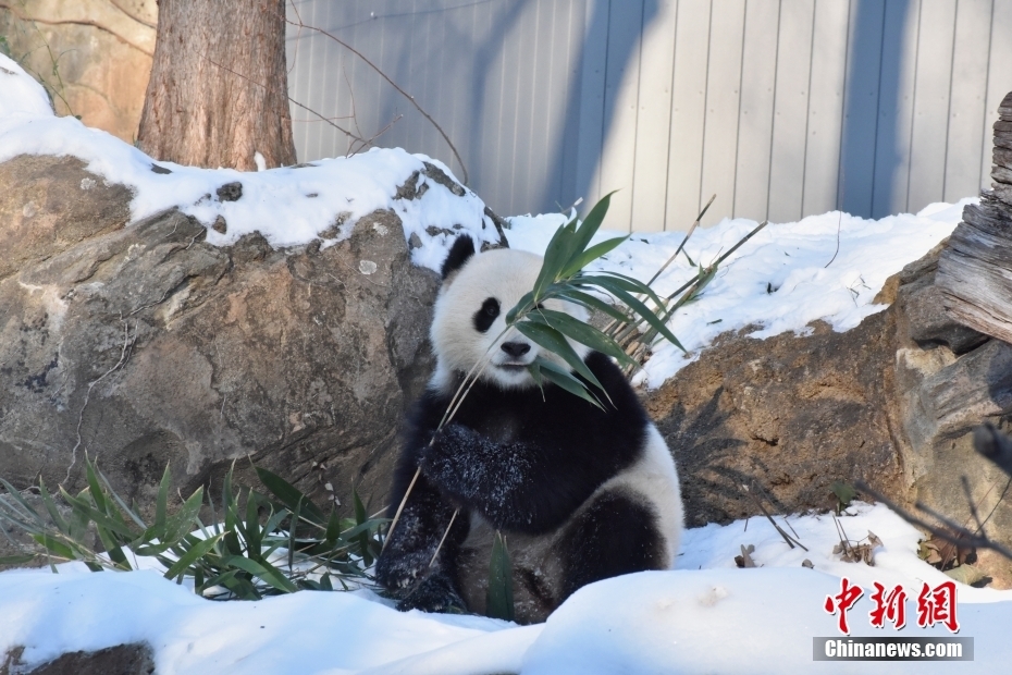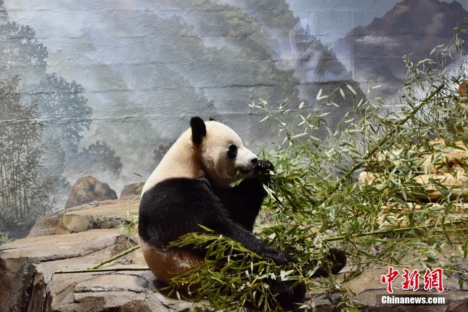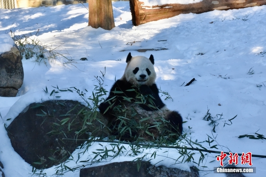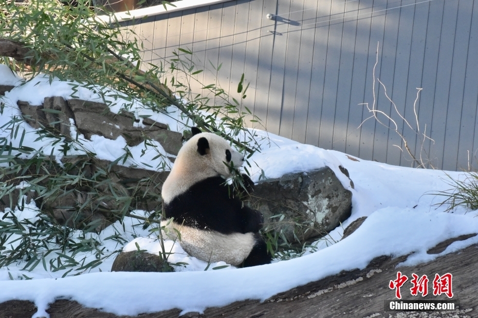 当地时间1月9日,美国华盛顿国家动物园熊猫馆馆长迈克尔·布朗-帕尔斯格鲁夫(Michael Brown-Palsgrove)表示,大熊猫“宝力”和“青宝”“已经完全准备好”与公众见面。图为“青宝”在吃竹子。