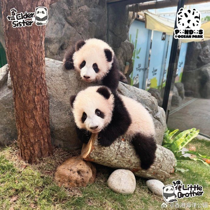 这对龙凤胎熊猫于2024年8月15日出生,刚出生时,两只大熊猫宝宝非常脆弱,需要时间稳定,经过半年时间的精心呵护和喂养,它们的体重从100多克长到约11公斤,体格变得健壮,性格活泼好动,能独立攀爬、奔跑,展露了“港产”大熊猫的独特活力。香港市民亲切的称呼雌性幼崽为“家姐”,雄性的则是“细佬”,意思是熊猫弟弟。这对龙凤胎的父母大熊猫“乐乐”和“盈盈”是香港回归祖国十周年之际,中央政府赠送香港的第二对大熊猫。这对龙凤胎的诞生是首次有大熊猫成功在香港“开枝散叶”。“盈盈”也成为有记录以来最年长初次成功产子的大熊猫。目前,两只大熊猫宝宝居住在海洋公园“大熊猫之旅”熊猫生活场馆,海洋公园宣布,他们将于2月16日正式与公众见面。