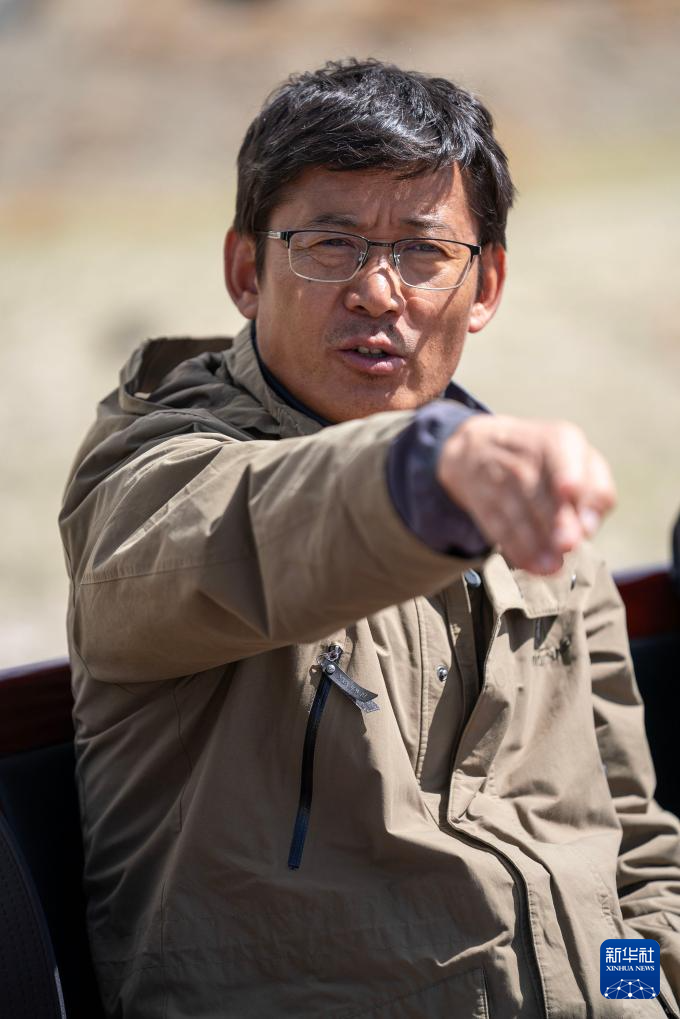 5月22日,联合考古队领队夏格旺堆在玛不错遗址向记者介绍考古发掘情况。新华社记者 旦增尼玛曲珠 摄