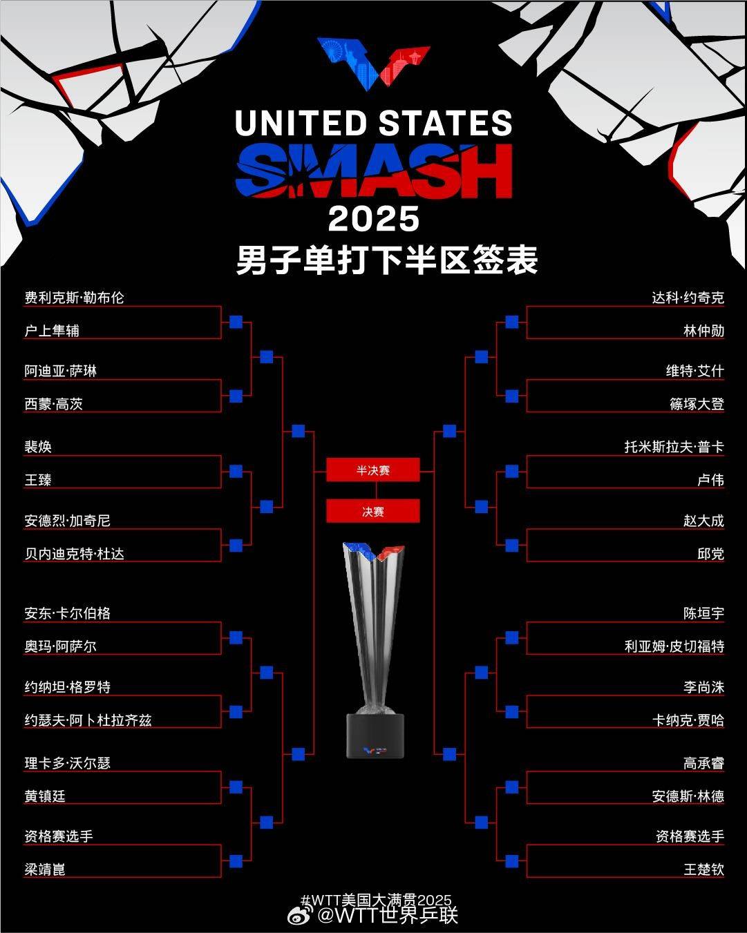 北京时间7月5日凌晨,2025年WTT美国大满贯赛事举行了抽签仪式,随后公布了男女单打签表。
