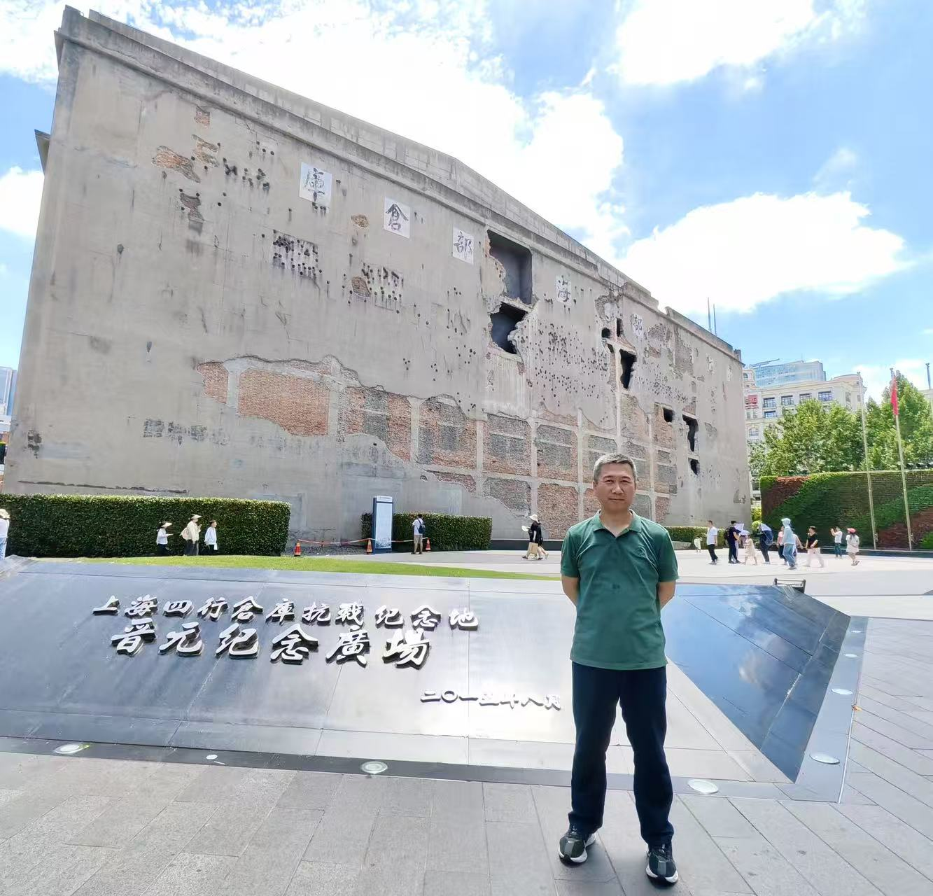 (李维在上海四行仓库抗战纪念馆前)