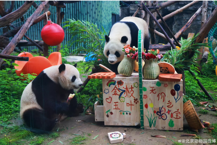 大熊猫“萌宝”“萌玉” 。图片来自北京动物园官方微博