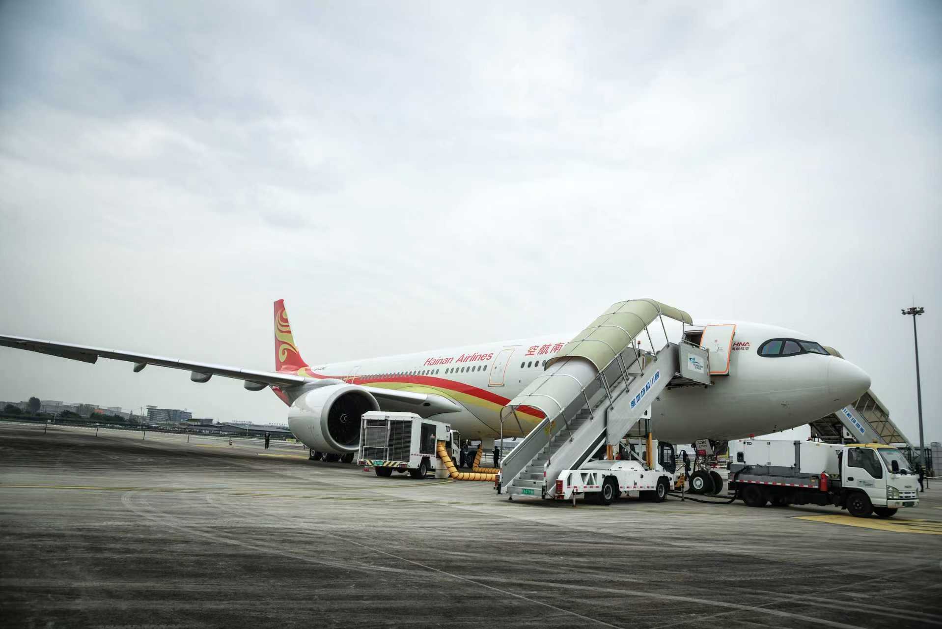 11月14日晚,首次在中国进行展示的空客A330neo飞机从成都双流国际机场起飞,前往本次旅程的下一站——北京。在此次调机飞行中,飞机创新性地通过质量平衡方式,加注了30%混合比的可持续航空燃料(SAF)。