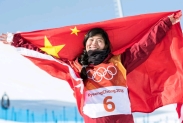 当地时间2月9日,米兰冬奥会自由式滑雪女子坡面障碍技巧决赛在意大利利维尼奥雪上公园举行。中国选手谷爱凌(左)摘得银牌,赛后面对镜头俏皮一下。