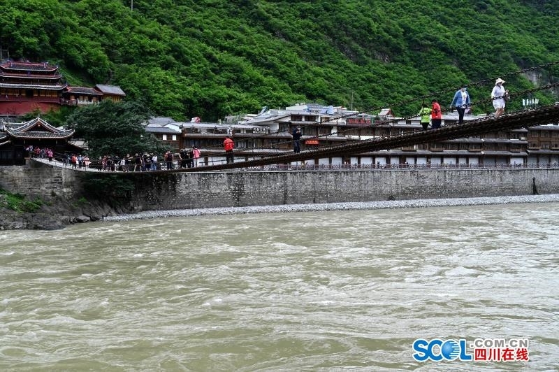 泸定桥上游人如织