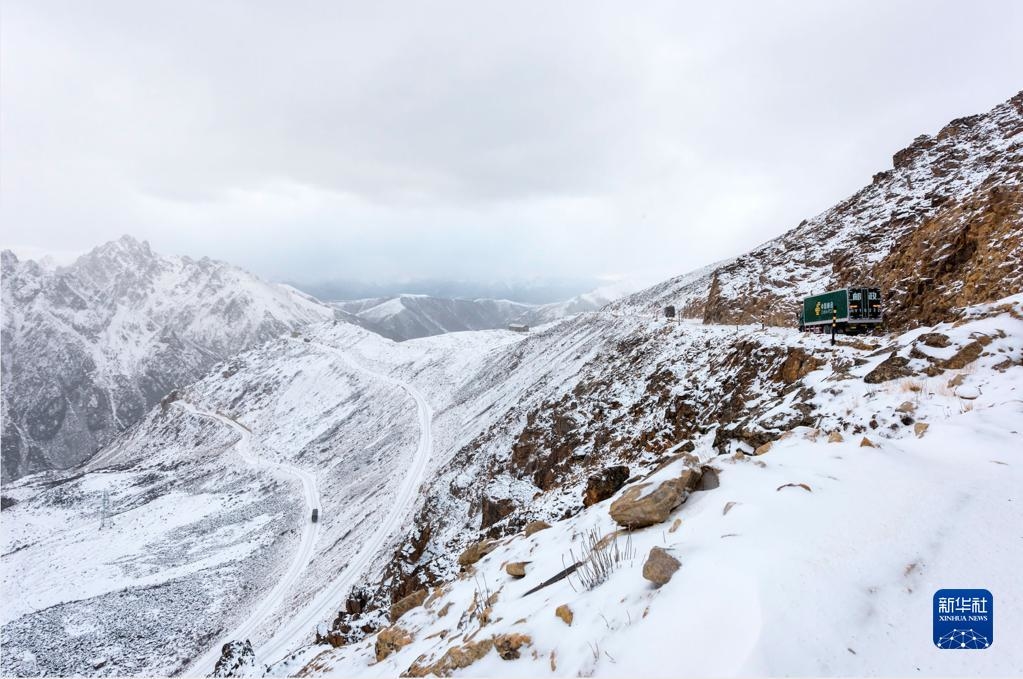 其美多吉与同事驾车行驶在雪线邮路上(资料照片)。其美多吉是中国邮政甘孜县分公司邮运驾驶组的一名邮车司机,往返在甘孜县与德格县之间。这段路程是四川省甘孜州绵延5866公里、平均海拔超过3500米的雪线邮路最危险的一段。新华社发(周兵 摄)