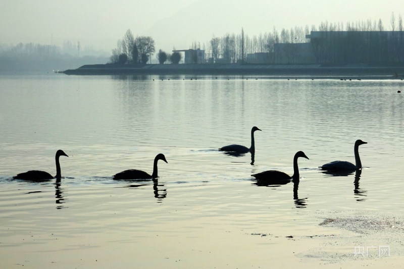 天鹅在这片水域中享受惬意的冬天(央广网记者张海东摄)