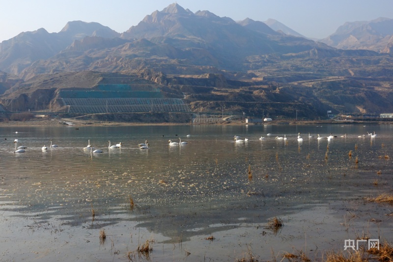 央广网西宁12月14日消息(记者 张海东)虽然已是寒冬时节,但是在位于青海省海东市化隆回族自治县群科镇安达其哈村的黄河公伯峡库区却是一派生机勃勃的景象,成群结队的大天鹅来到这里越冬,与这里的山水共同构成一幅自然的生态画卷,成为冬日里一道亮丽的风景。