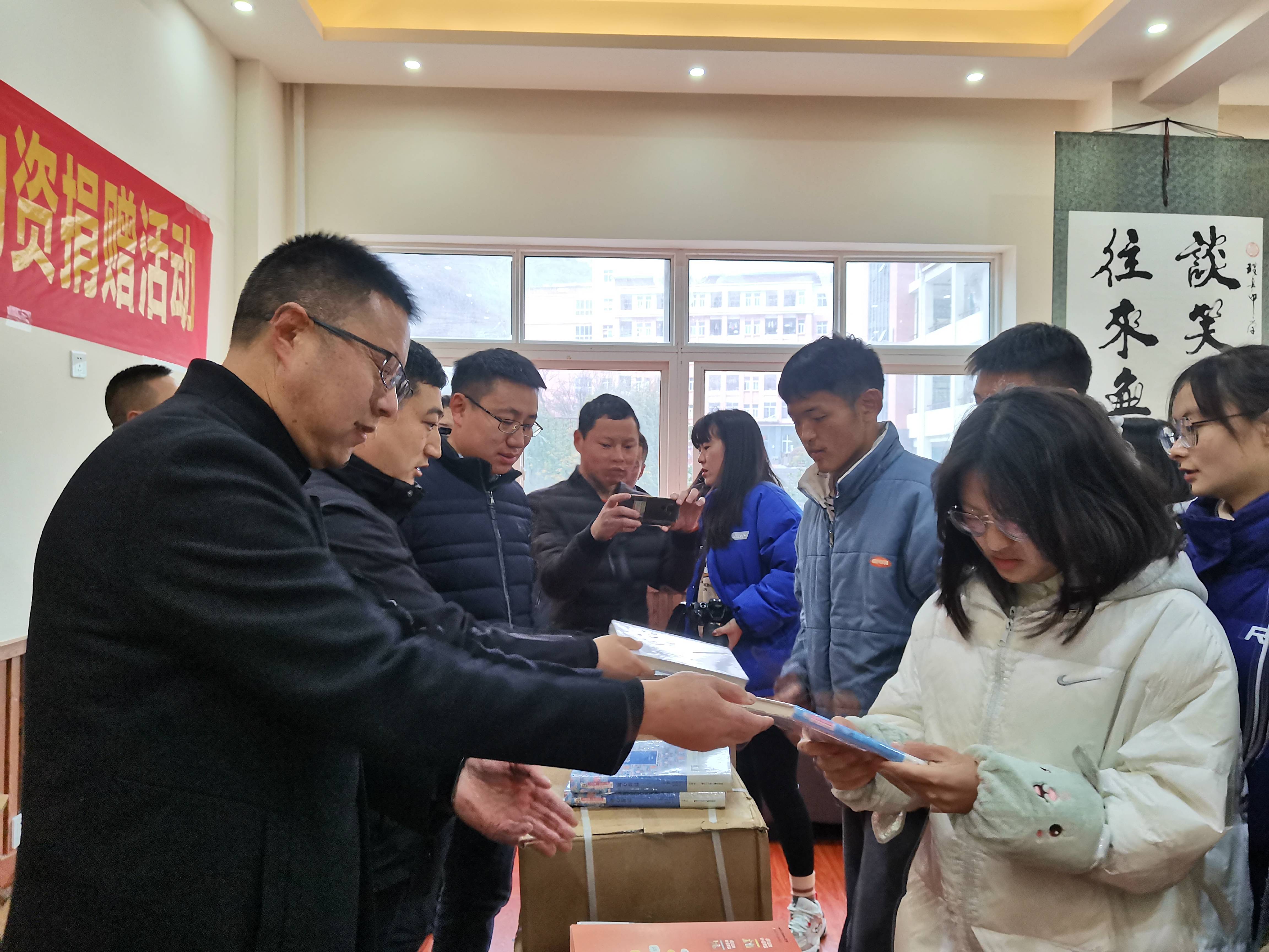 12月23日,四川省公共机构在理县开展“光盘打卡”募集公益物资捐赠活动。
