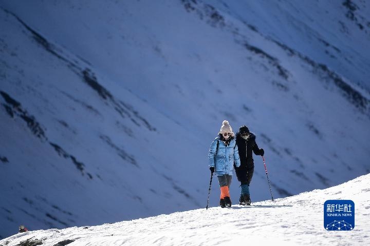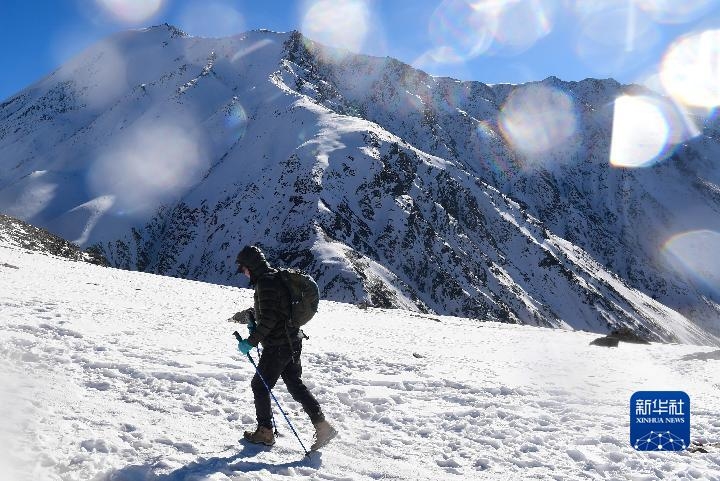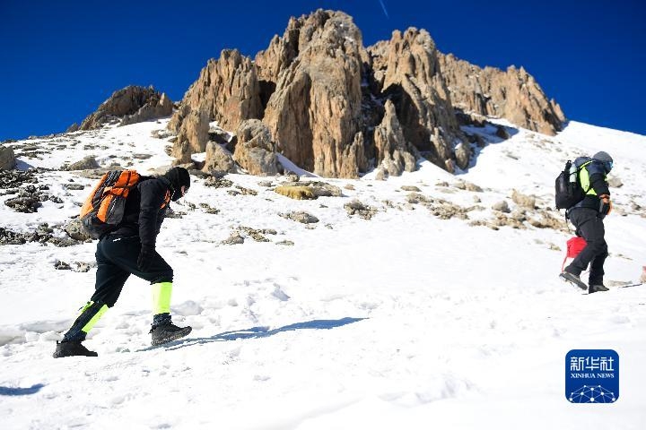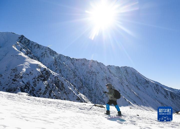 1月1日,登山爱好者攀登岗什卡雪峰。新华社记者 张龙 摄