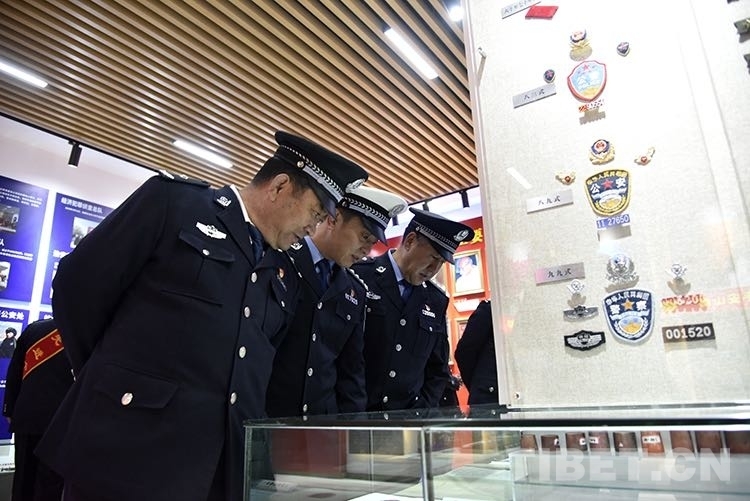 升警旗活动结束后,大家来到公安史展馆参观。公安史展馆2014年9月建成开馆,2020年底重新修缮。重新规划布展后的公安史展馆展陈面积809平方米,展出藏品1070件,设有8个主题展厅,收藏了西藏和平解放、民主改革等不同时期丰富的公安工作文字、图片和视频资料。据介绍,公安史展馆揭牌后,将对西藏自治区广大民辅警和社会群众、中小学生等开放。