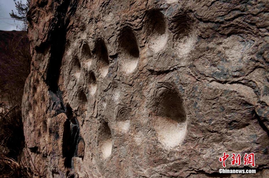 图为3月14日拍摄的凹穴岩画群。 中新社发 称多县文联 供图