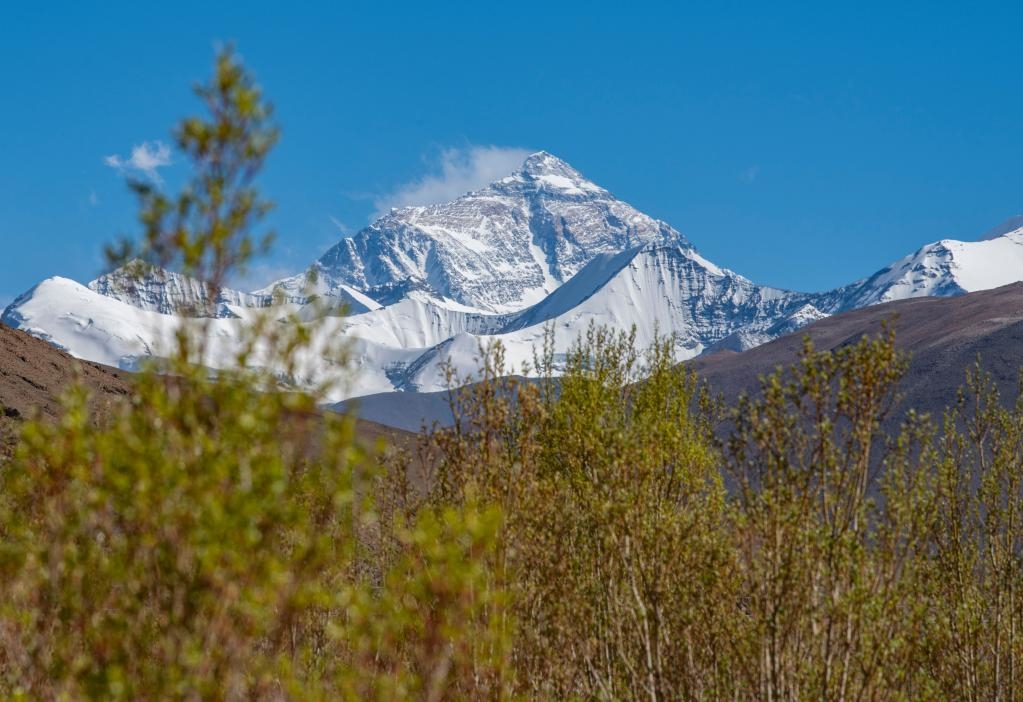 在扎西宗乡拍摄的珠穆朗玛峰。新华社记者 孙非 摄
