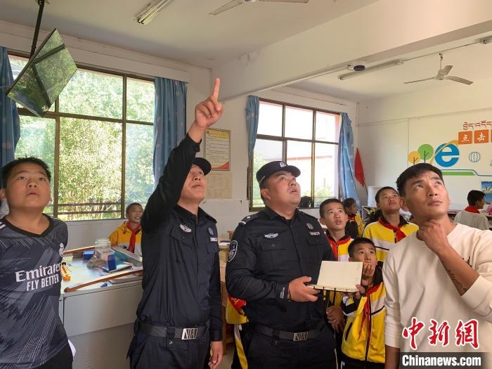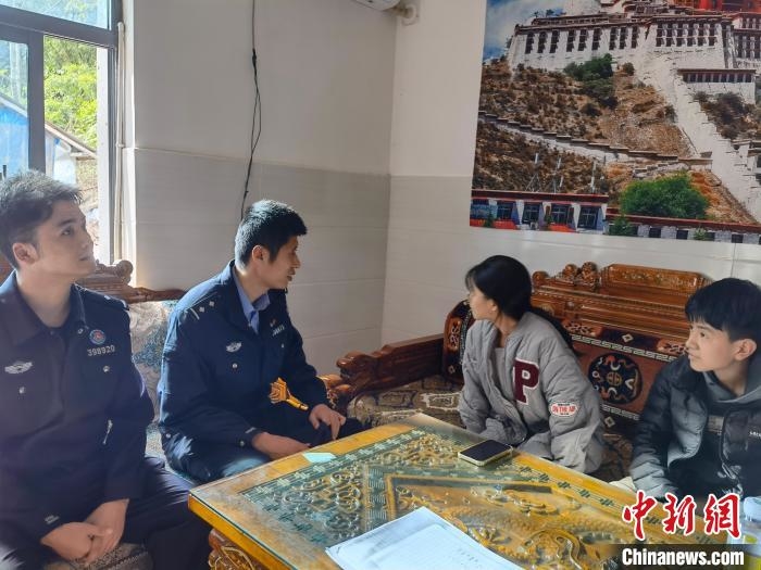 图为背崩边境派出所民警走访辖区学校,排查受灾情况。 吕恒刚 摄