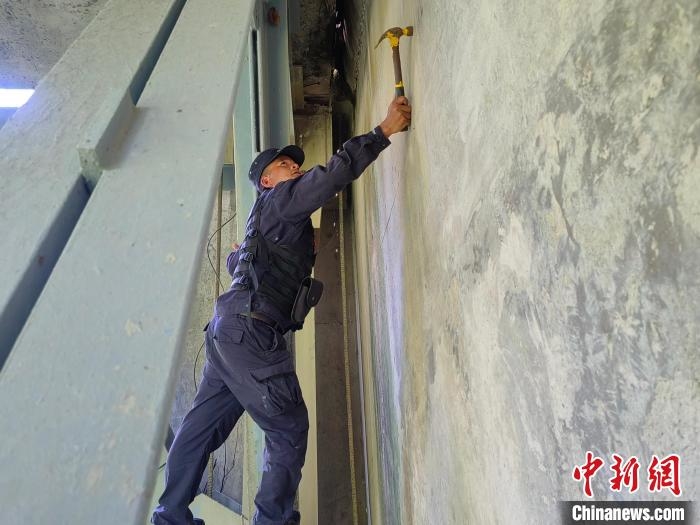 图为墨脱边境管理大队民警正在检查桥梁受损情况。 杨光飞 摄