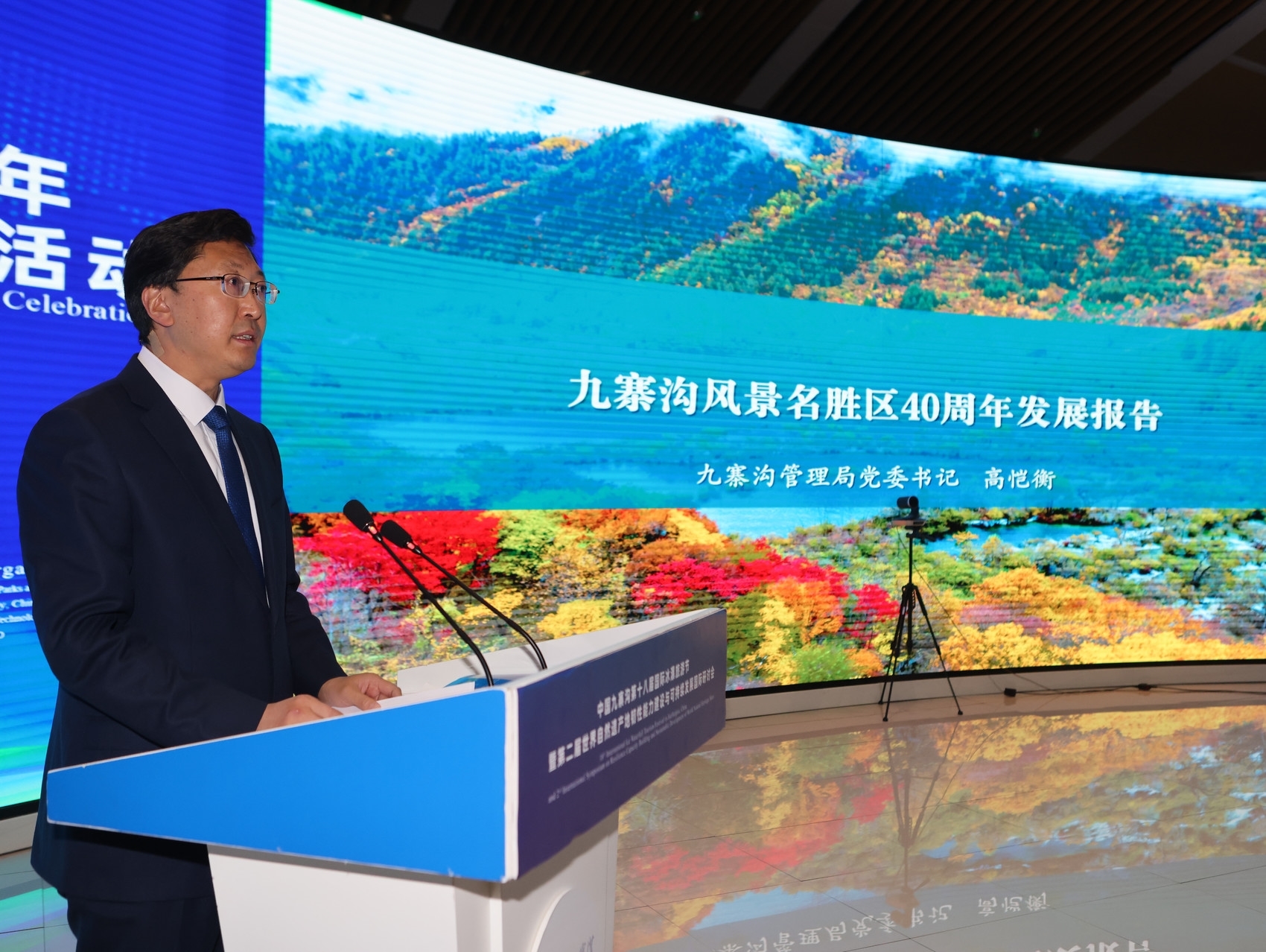 活动上,九寨沟管理局党委书记高恺衡作《九寨沟风景名胜区40年发展报告》交流了九寨沟40年发展经验。40年间九寨沟走过了一段艰辛却又辉煌的旅程,创造了“保护型”发展模式,实现了生态、经济、社会效益的良性循环,取得了举世瞩目的成就。九寨沟风景名胜区在几代九寨人的共同努力下,实现了从一条无人知晓的小山沟发展成为驰名中外的旅游胜地,从偏远落后的川西北一隅走向享誉全球的广阔世界。