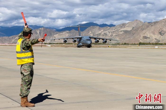 维和部队官兵搭乘专机抵达拉萨贡嘎国际机场。张琦摄