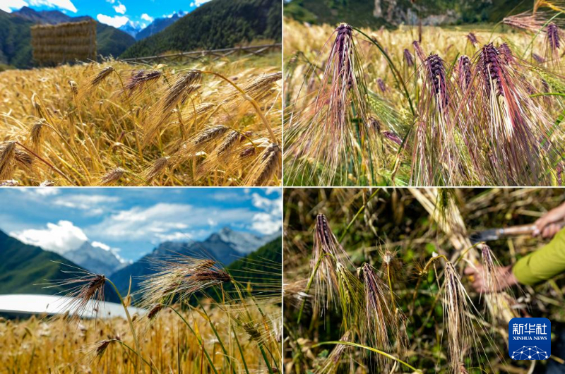 这张拼版照片显示的是10月12日在四川甘孜藏族自治州稻城县亚丁村拍摄的待收割的青稞(左上、右上由新华社记者黄晓勇摄;左下、右下由新华社记者沈伯韩摄)。新华社发