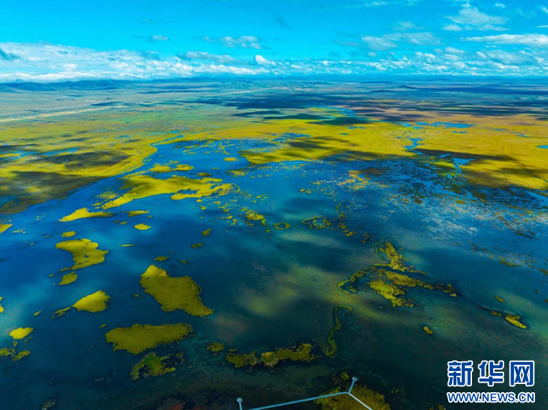 俯瞰若尔盖花湖,碧波荡漾,一望无垠。新华网发 夏雪东尔 摄