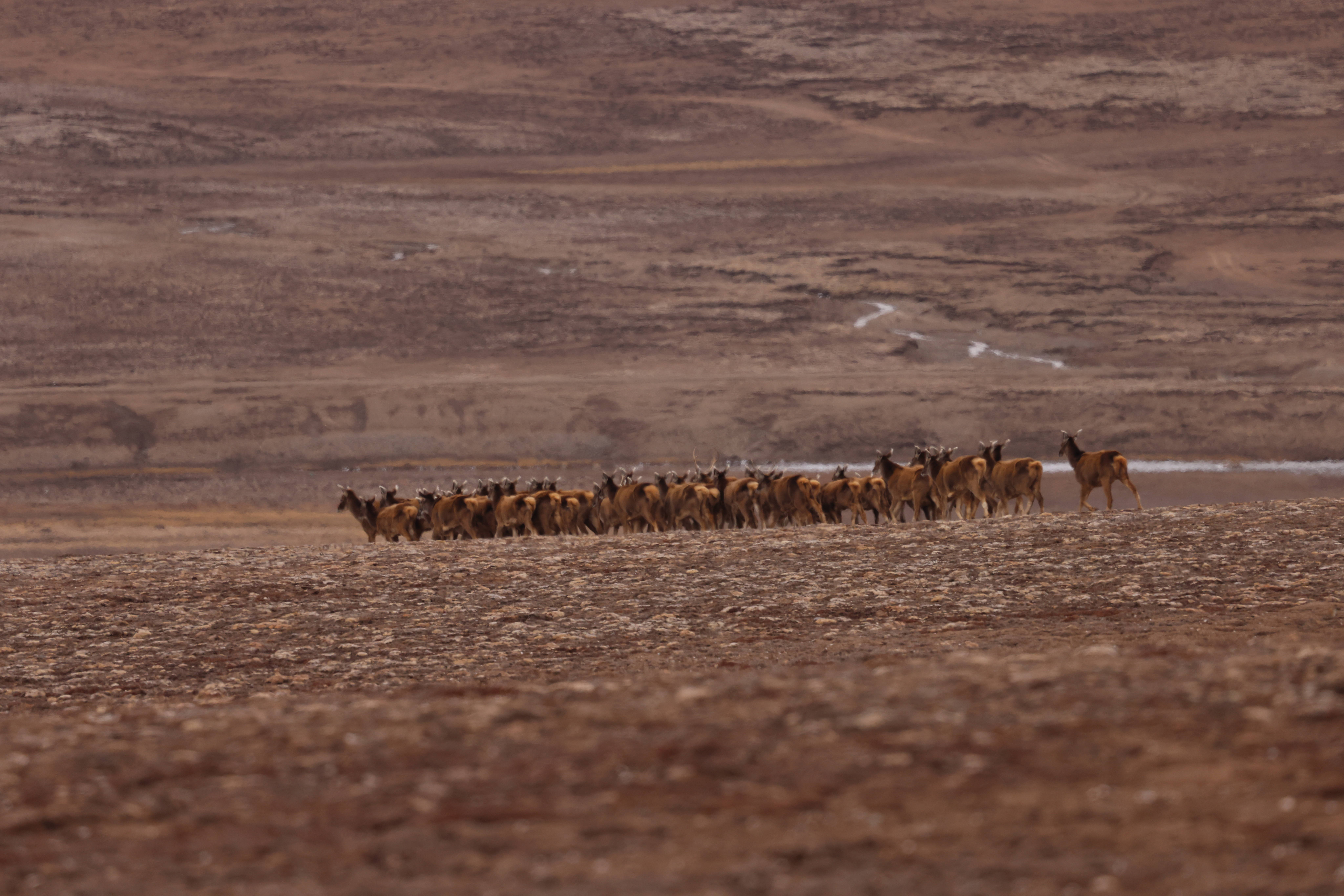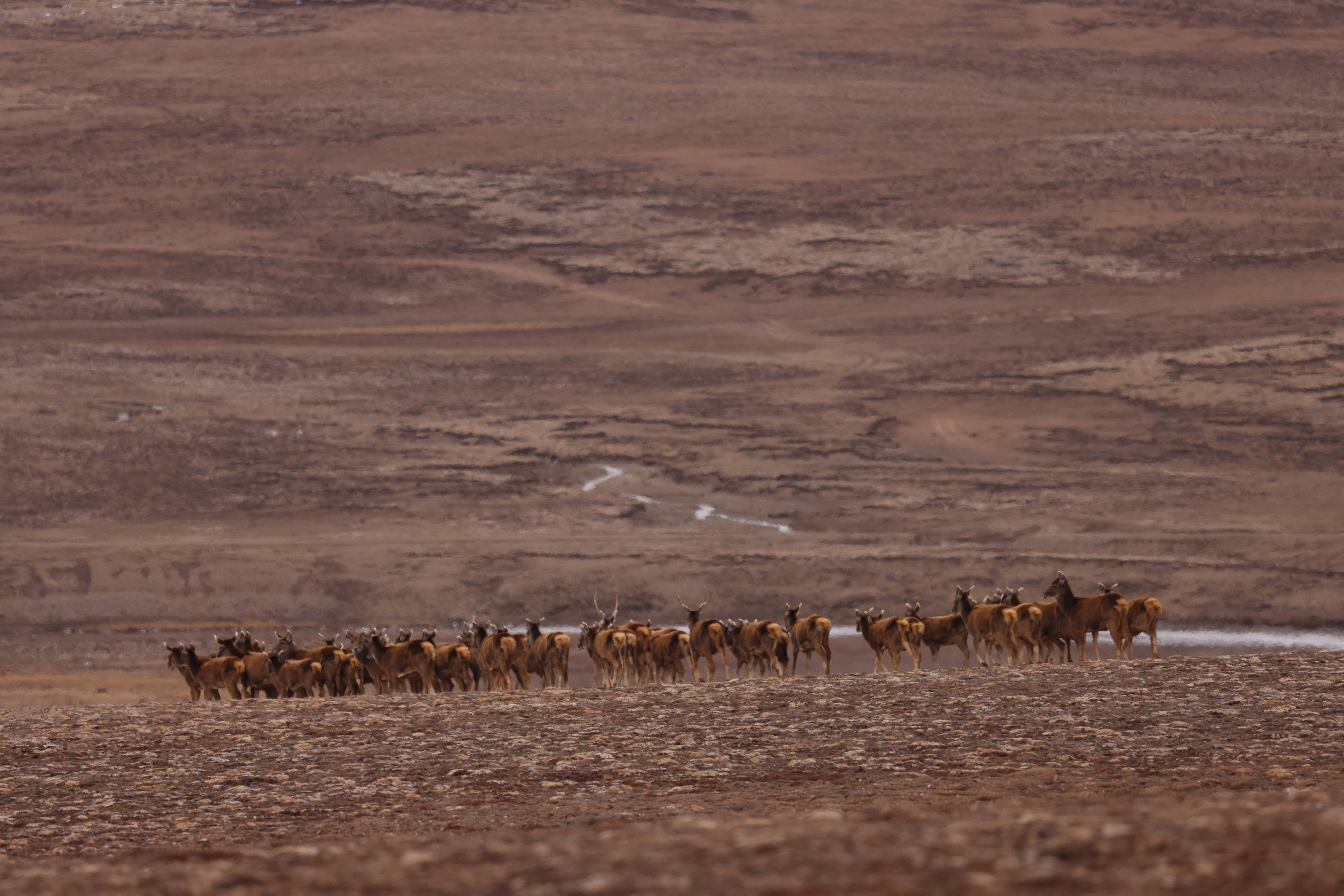 成群的白唇鹿在草原游荡(西华师范大学 冯彬摄)