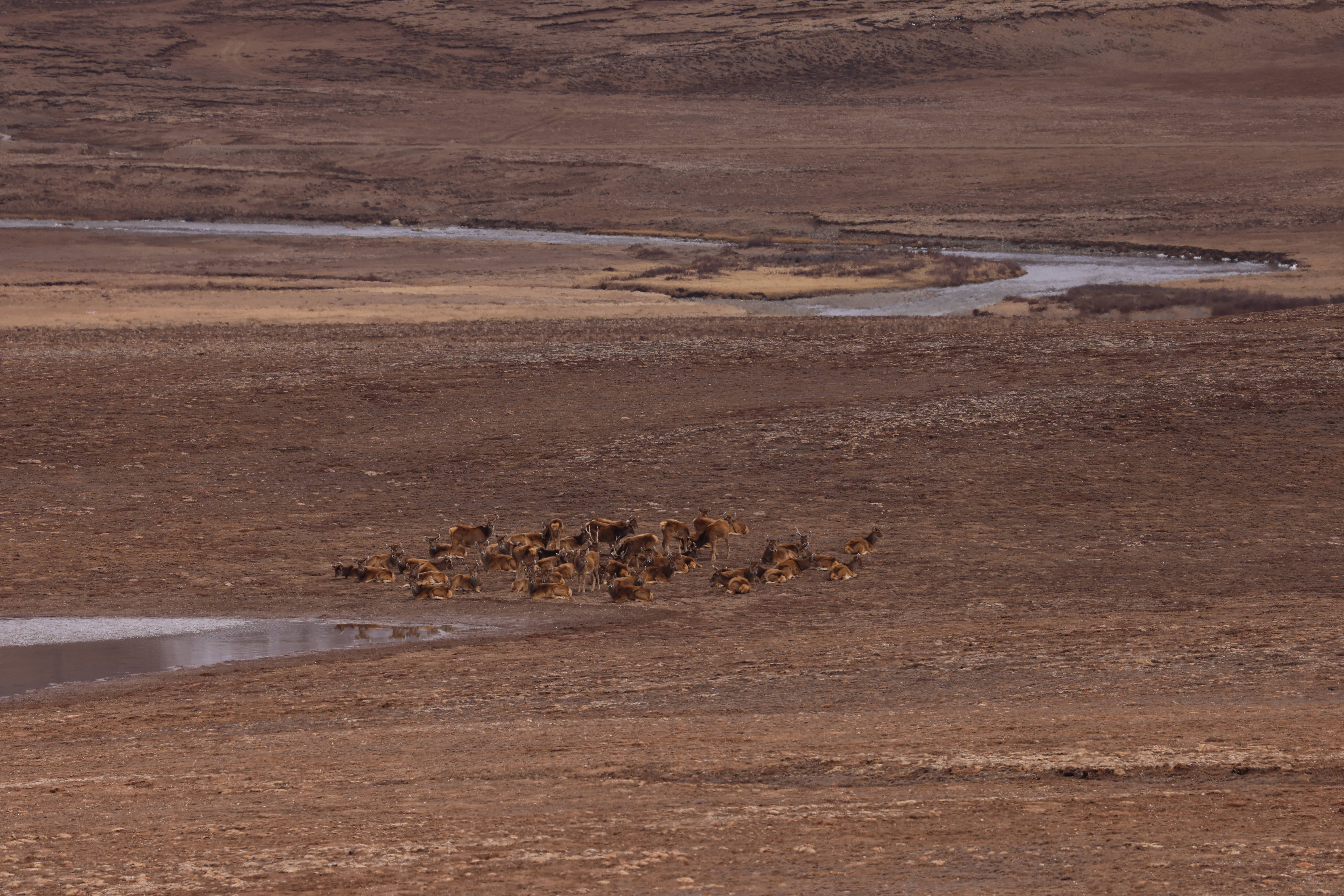 成群的白唇鹿在水源边休憩(西华师范大学 冯彬摄)