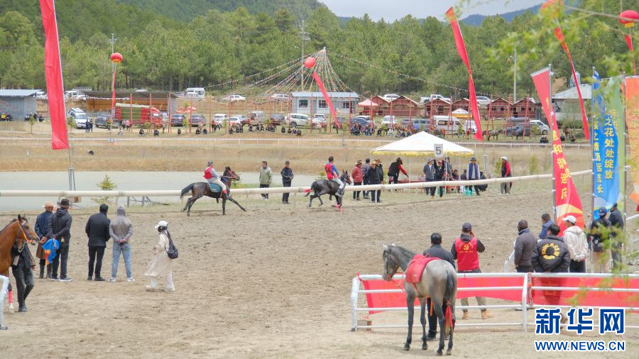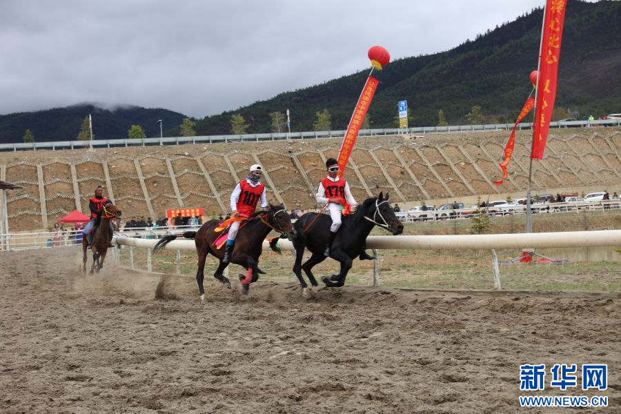选手在表演跑马拾哈达(5月29日摄)。新华网 范芳钰 摄