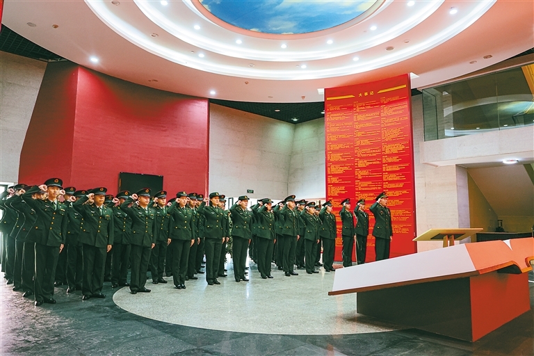图为拉萨警备区某团组织党员参观西藏军区军史陈列馆,重温入党誓词。记者 唐斌 通讯员 何琪 摄