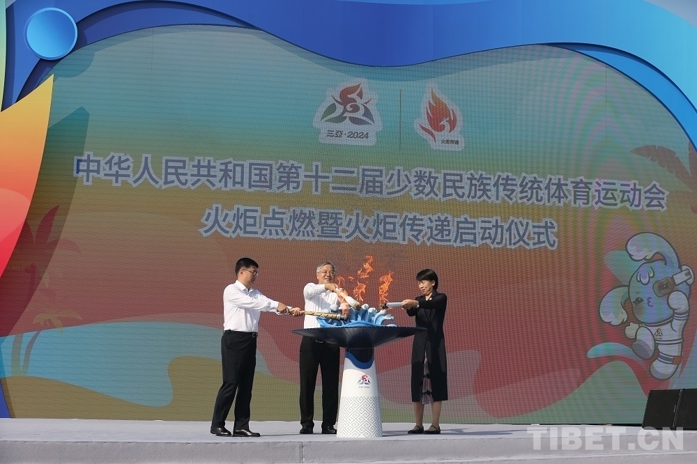 中国西藏网讯 10月9日,中华人民共和国第十二届少数民族传统体育运动会(以下简称运动会)火炬点燃暨火炬传递启动仪式在海南省三亚市天涯海角举行。采集自海南热带雨林国家公园的“生态之火”、航行海洋之中“探索二号”科考船的“科技之火”、崖州湾国家南繁科研育种基地的“希望之火”同频共燃,汇聚成象征中华民族一家亲、同心共圆中国梦的“同心之火”,表达着全国各族人民携手并肩、共同迈向美好未来的坚定决心。